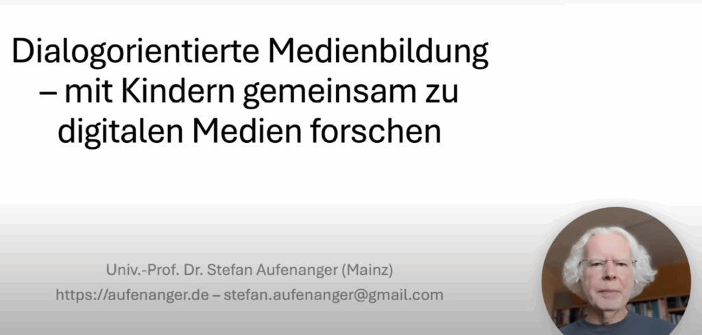 Am 1. Oktober 2025 habe ich im Rahmen des Onlinefachtags Medien ein Webinar zum Thema „Dialogorientierte Medienbildung – mit Kindern gemeinsam zu digitalen Medien forschen“ angeboten, das auf YouTube genutzt werden kann. Es geht im Thema darum aufzuzeigen, dass digitale Medien wie etwa Tablets in Kitas nicht nur als Werkzeug, sondern auch zur Sprachförderung eingesetzt erdne können, in dem Kinder diese forschungsorientiert erkunden.