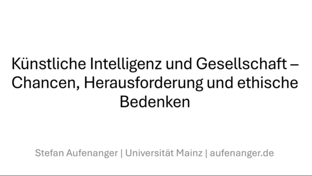 Für den HessenCampus habe ich im September 2025 einen Onlinevotrag zum Thema „Künstliche Intelligenz und Gesellschaft – Chancen, Herausforderung und ethische Bedenken“ gehalten, der auf YouTube zur Verfügung steht. Es geht darum, die kritischen Dimensionen der Entwicklungen im Bereich von KI aufzuzeigen, ohne gleich dystopisch zu werden.